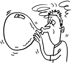 - Espiramos llenando la boca de aire de tal manera que se inflen las mejillas; para ello colocamos la boca en actitud de soplar.